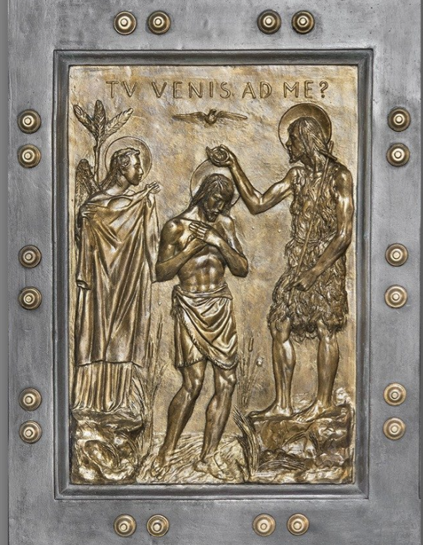 Un messaggio tanto bello quanto incredibile: Gesù viene incontro alla nostra incapacità di accoglierlo e ci consente di toccare la carne viva del suo corpo risorto, come fece con l’apostolo Tommaso. Effonde poi lo Spirito Santo sugli Apostoli perché a loro volta perdonino nel Suo nome i peccati “Non sono più io che vivo, ma Cristo vive in me”, scrive ai Galati san Paolo, rappresentato nella quindicesima formella nel momento della conversione sulla via di Damasco.