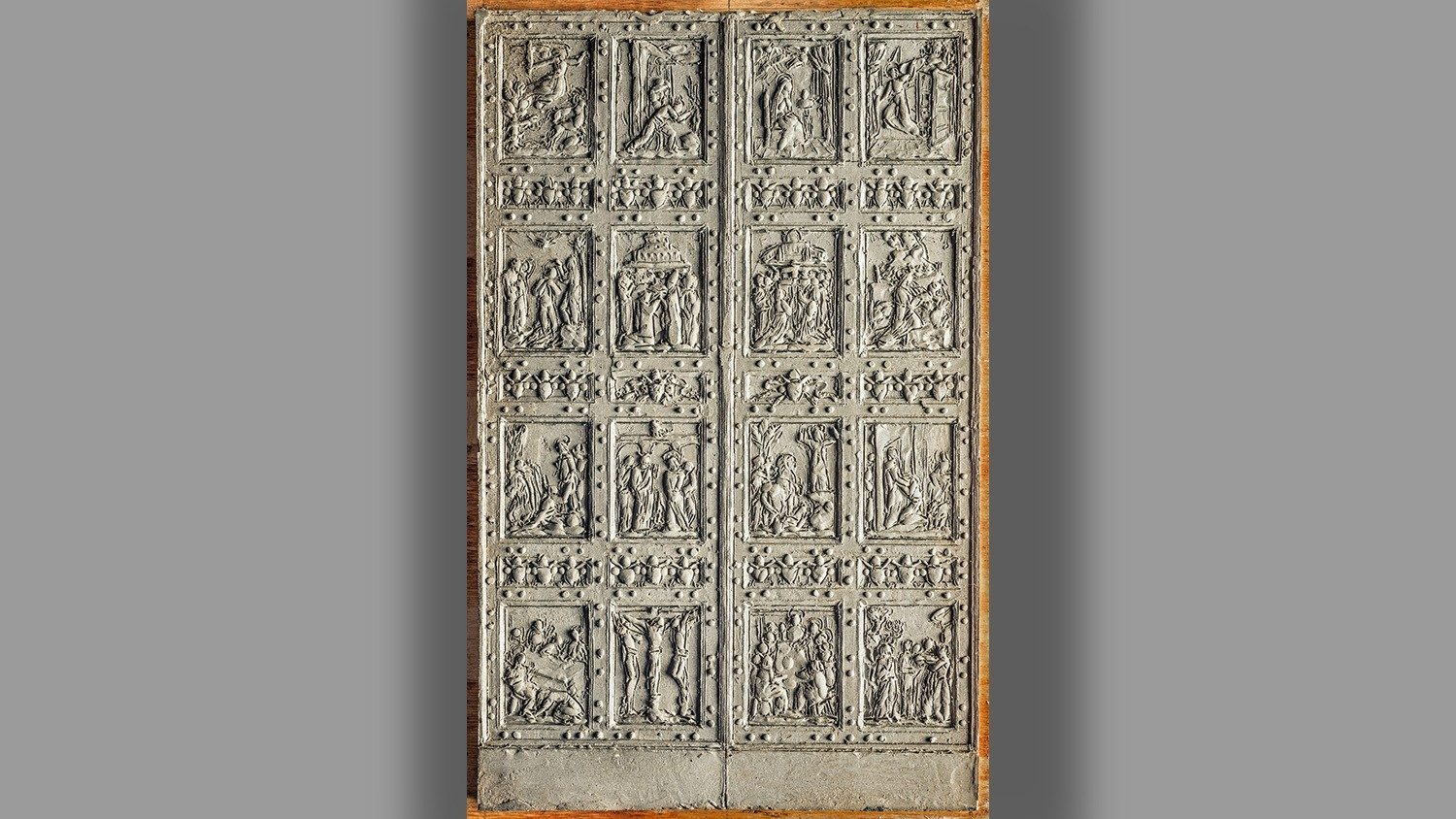 Fu Kaas a suggerire i soggetti forgiati nel bronzo delle formelle e tratti dalla Bibbia: raffigurano, secondo canoni estetici derivanti dall’arte del Trecento e Quattrocento toscano, la storia umana bisognosa del perdono divino. Nell’ultima formella, l’unica smontabile perché nelle intenzioni originarie era destinata ad essere sostituita ad ogni Giubileo, il prelato è rappresentato con una candela in mano mentre assiste all’apertura dell’Anno Santo da parte di Papa Pio XII il 24 dicembre 1949.